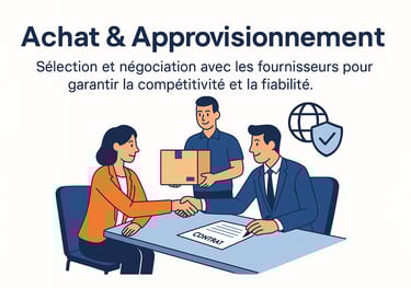 Sélection et négociation avec les fournisseurs pour garantir la compétitivité et la fiabilité.